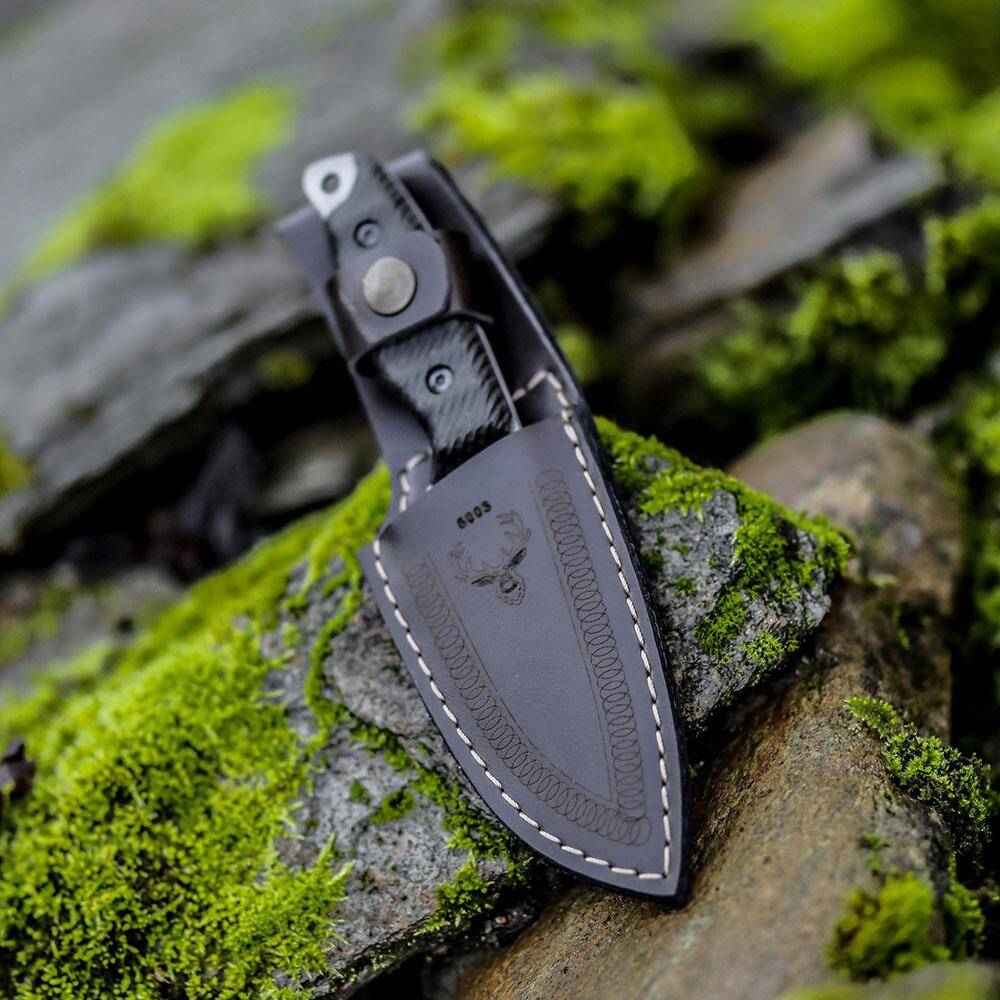 Foçalı Yatağan 5003 Av Kamp Bıçağı, özel deri kılıfı ile birlikte gelir. Bu kılıf, bıçağınızı taşırken ve korurken estetik bir görünüm sunar.